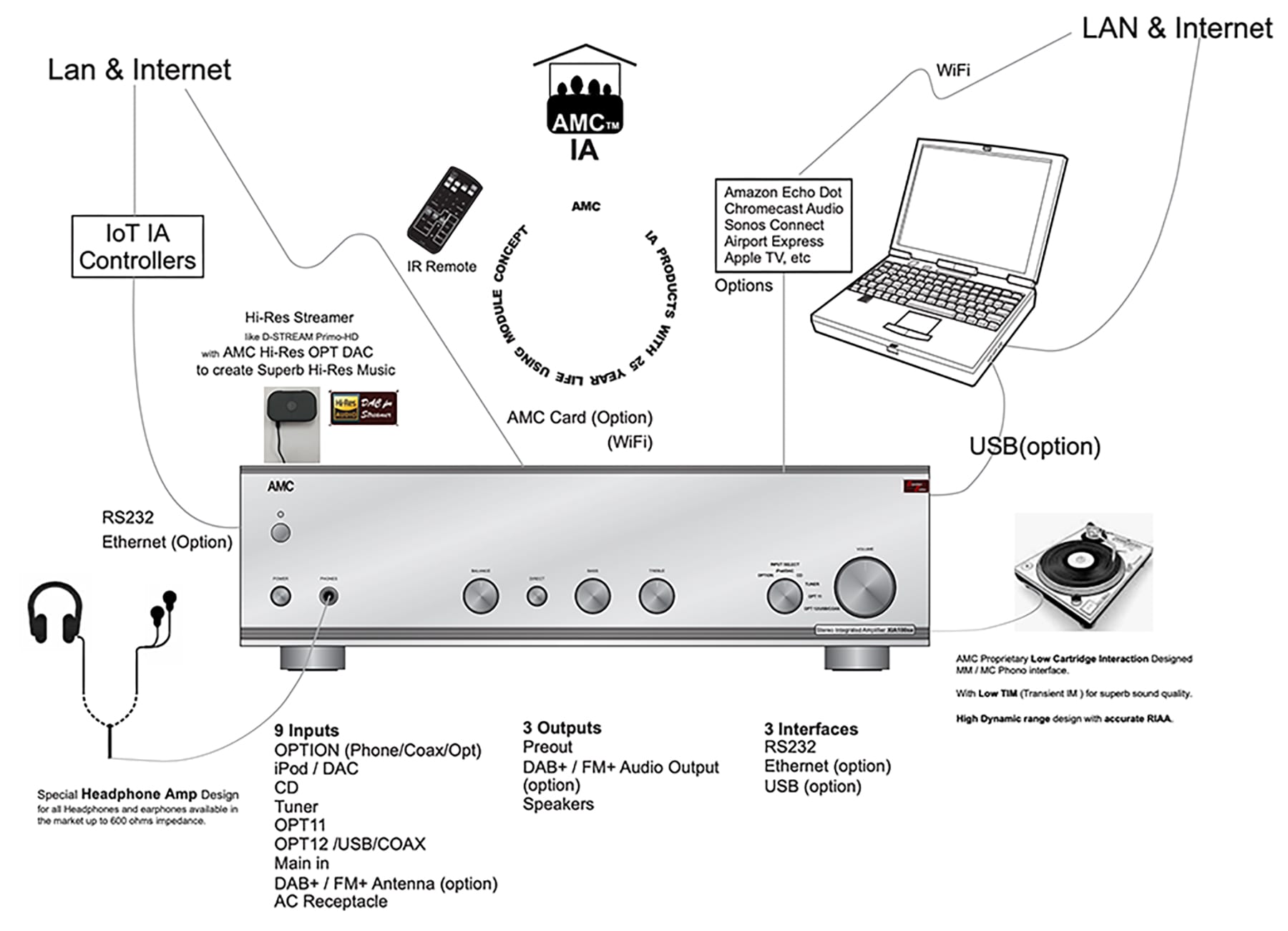 AMC XIA150se er en 150Wattt integrert forsterker med velutstyrte funksjonener. Phono inngang (MM, MC), optisk og koaksial inngang, ethernet og USB inngang etc. Kompatibel med alle strømmetjenester. Uansett om du behandler musikken din digitalt eller foretrekker en analog løsning, garanterer den integrerte XIA150se et engasjerende lydbilde, spekket med musikalitet, dynamikk og tilstedeværelse. Maksimal underholdning til en bemerkelsesverdig pris. I hjemmekinoen kan det kobles rett fra forforsterker til surround prosessor/receiver.