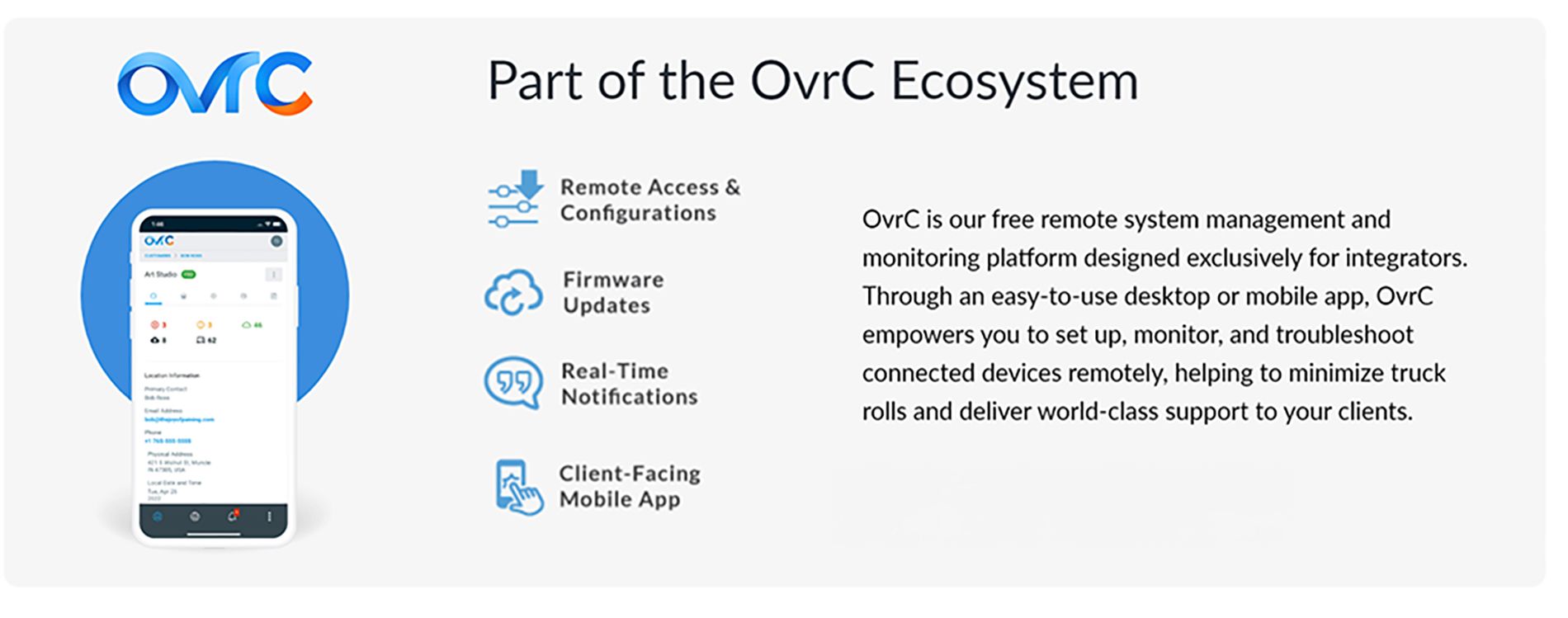LED‑indikatorer på både front og bakside gjør det enkelt å se portstatus. Som med alle Araknis‑svitsjer får du fjernadministrasjon via OvrC®.