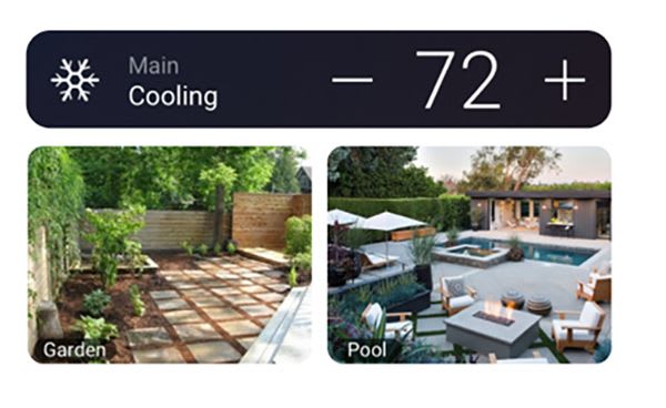 Tilpassbare widgeter lar brukerne skreddersy startskjermen akkurat slik de ønsker, og gir rask tilgang til ofte brukte funksjoner som kameraer og enhetsstatus. Med mulighet for å bytte ut, endre størrelse og omorganisere, optimaliserer widgetene både startskjermen og romvisningen.