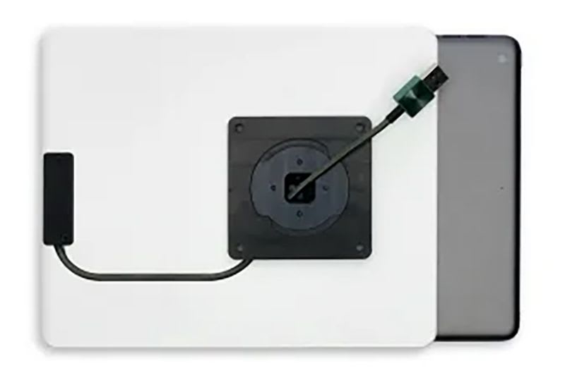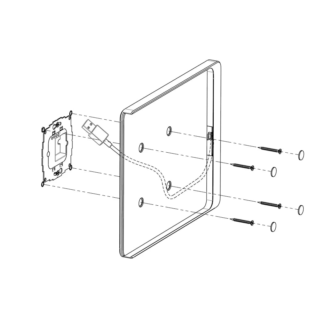 Det elegante Dame Wall Home veggfestet har en spesielt enkel veggmontering. Takket være det medfølgende monteringskitet kan iPad-festet installeres på kort tid og kombinert med den valgfrie innfelte strømforsyningen forsvinner ladekabler inn i veggen.