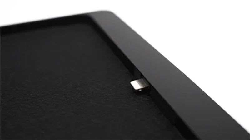 Takket være den integrerte ladekabelen er det enda enklere å lade nettbrettet. Kombinert med den valgfrie strømforsyningen forsvinner kabelen inn i veggen og nettbrettet vil alltid lades mens det står i veggfestet. Dermed forblir enheten alltid klar til bruk.