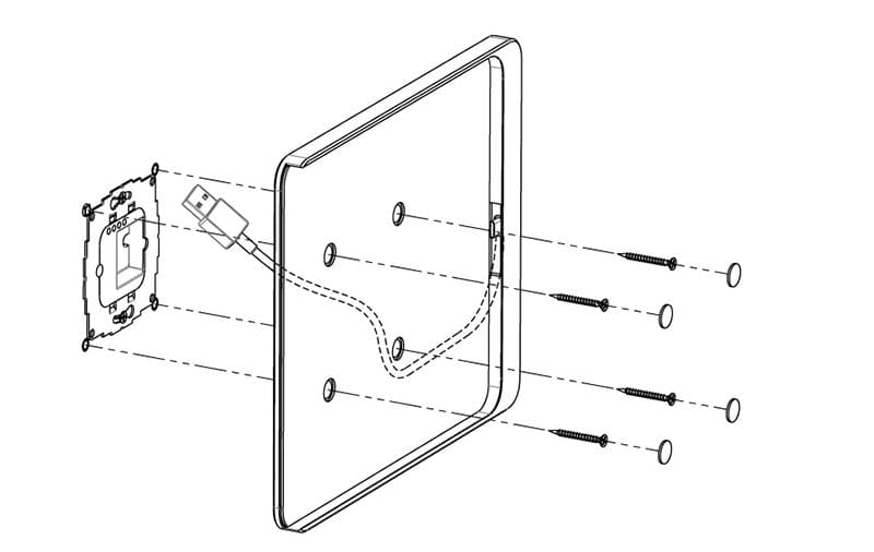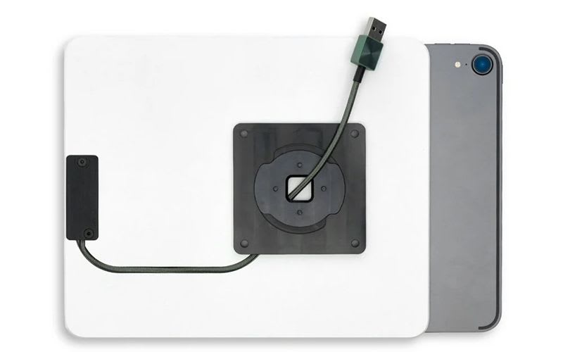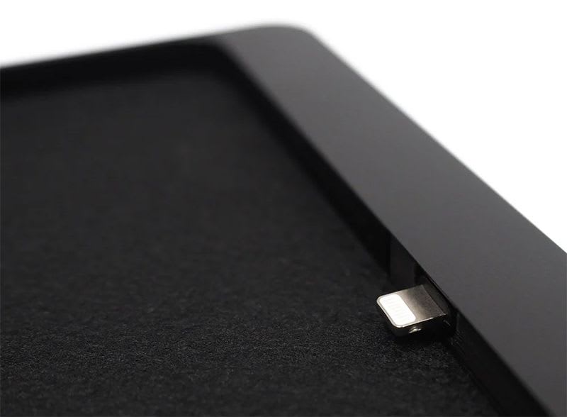 Takket være den integrerte Lightning-ladekabelen blir lading av nettbrettet enda enklere. Kombinert med den valgfrie Flush-strømadapteren forsvinner kabelen usynlig inn i veggen, og nettbrettet er alltid ladet i veggfestet. Dermed er enheten din alltid klar til bruk.