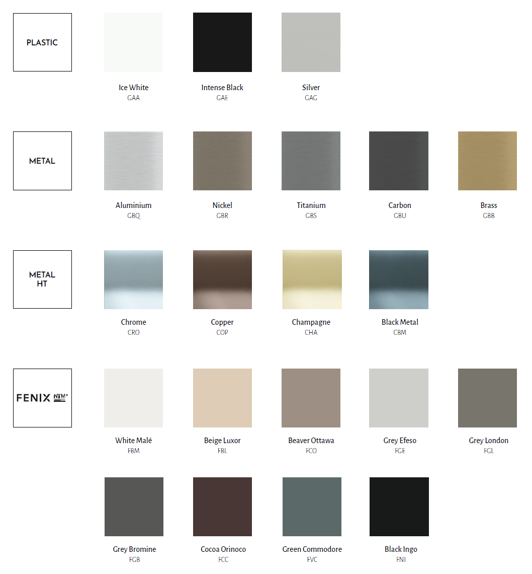 Enten det er trykknapper, termostater, berøringsdisplayer eller stikkontakter, tilbyr FF-serien en rekke valgmuligheter. Materialer som plast, metall og Fenix NTM® gir en variert palett å velge fra. Du kan også blande og matche ulike finisher fritt, og tilpasse dem gjennom FORM, FLANK, 'NF, DEEP og SURFACE.