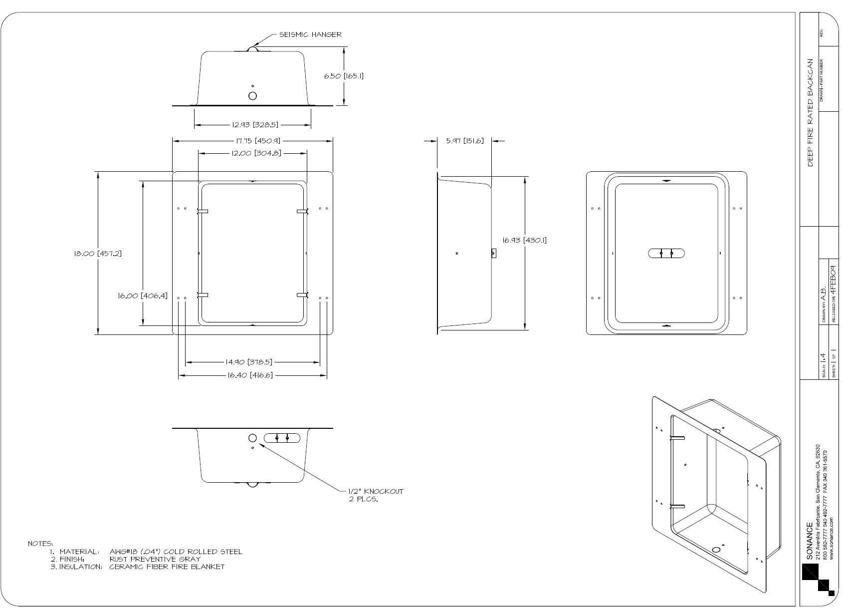 Sonance Fire-Rated Deep Backcan, stk,