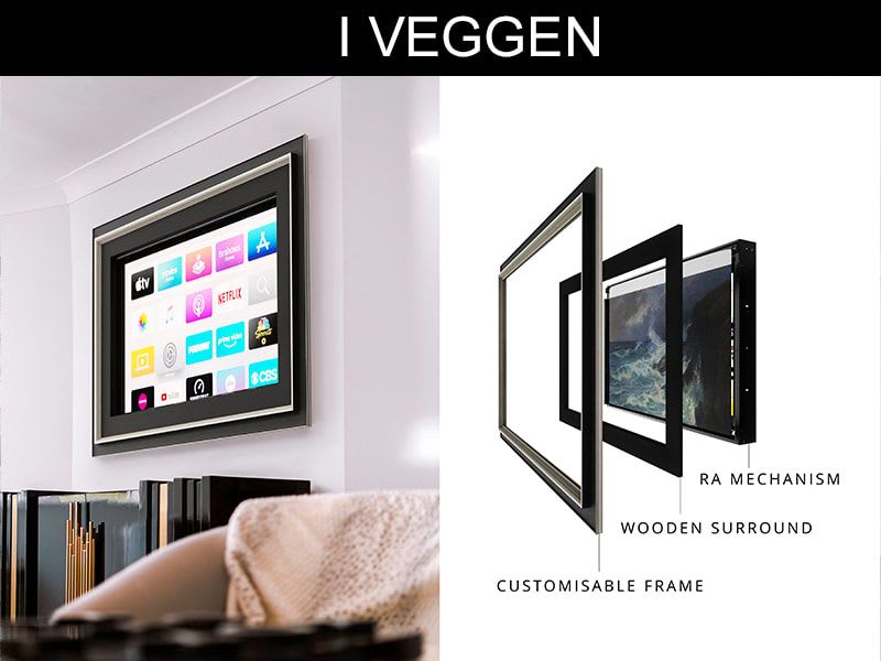 Den nærmest lydløse mekanismen ruller kunstverket elegant oppover, og skaper en parallakse effekt som på en enkel måte avdekker skjermen når det ønskes.