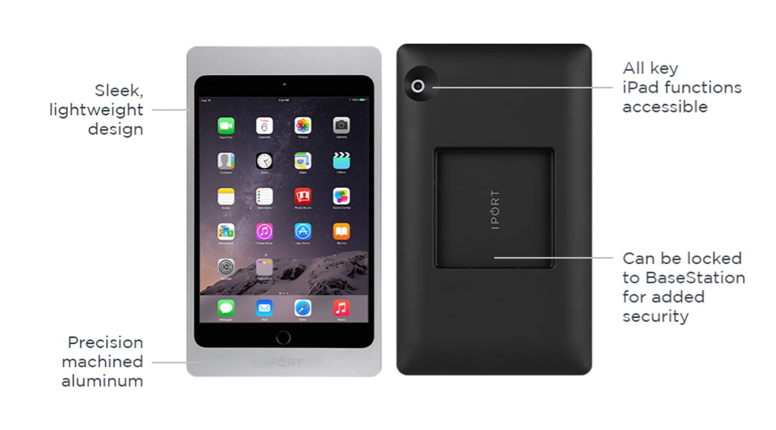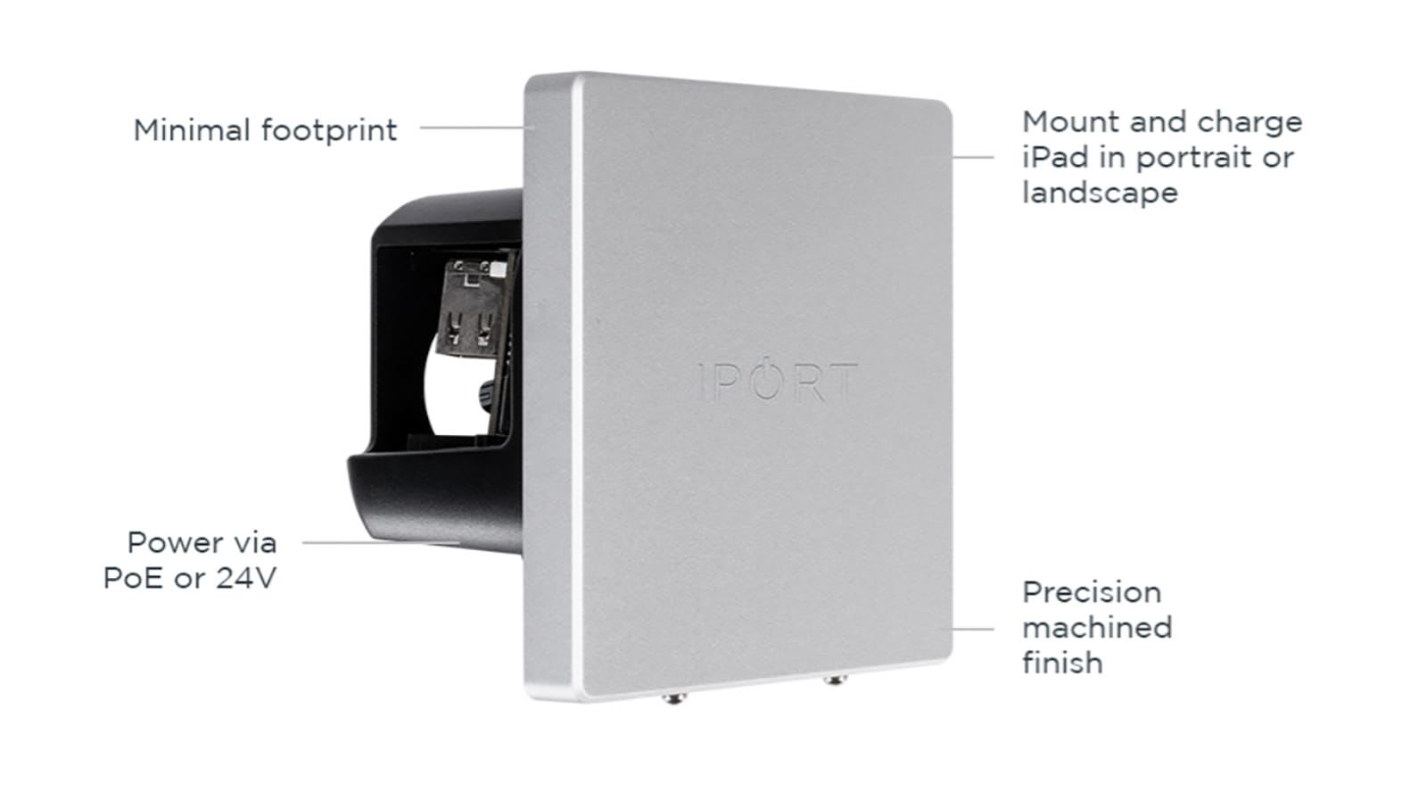 IPORT LUXE er et førsteklasses trådløst lade- og monteringssystem for iPad, designet for lading på et bord eller på vegg. LUXE dekselet er et tynt kabinett av aluminium som beskytter iPad og samtidig gir deg full tilgang til alle iPad-knapper, mikrofoner, kameraer og høyttalere. LUXE bordmodell lar iPad lade trådløst og monteres via innebygde magneter. Sikkerhetsfunksjonene til bodmodellen inkluderer muligheten til å låse dekselet på ladestasjonen. Bordmodellen kan drives av en USB-adapter eller valgfritt via PoE ved hjelp av IPORT PoE Splitter (selges separat). LUXE veggstasjon er makedes minste mest elegante iPad veggfeste laget av et unikt stykke aluminium. Ved hjelp av IPORTs PoE Splitter og en standard CAT-kabel kan veggstasjon monteres opptil 30 meter fra strømkilden. Med sin minimalistiske design og førsteklasses utførelser vil LUXE systemet gli inn i ethvert interiør, og din iPad vil alltid være ladet og beskyttet.