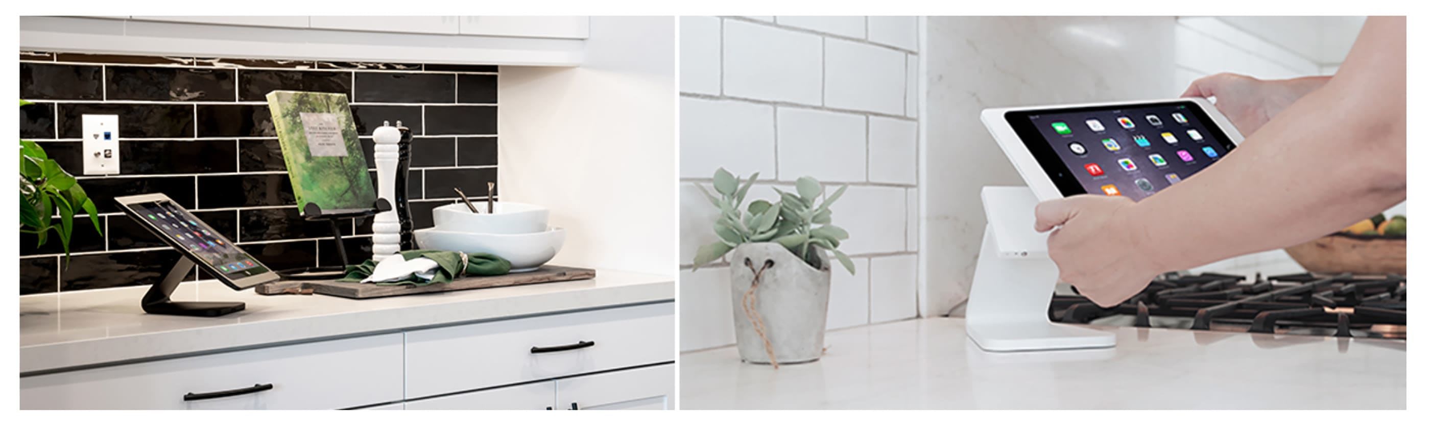 LUXE veggfeste gjør det mulig å montere iPad sikkert på en vegg eller solid overflate i stående eller liggende retning.