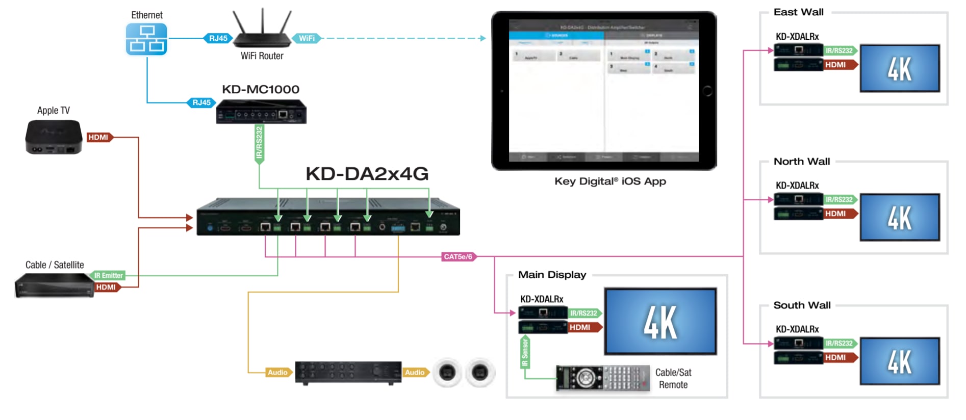 - Control System Support: Key Digital® app ready. Key Digital Management Software™ Pro (KDMS™ Pro) ready, Compass Control® Pro ready. Fully controllable by all IR, RS-232, and TCP/IP supported control systems via open API.