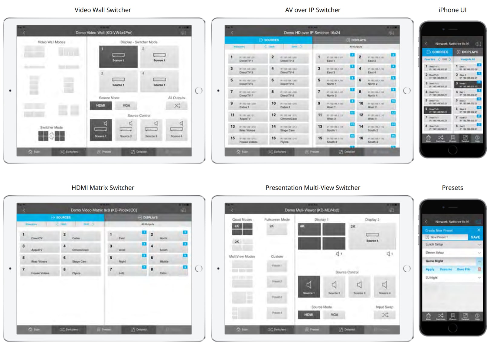 Switcher Control: Enables users to choose desired video sources and assign them on selected displays