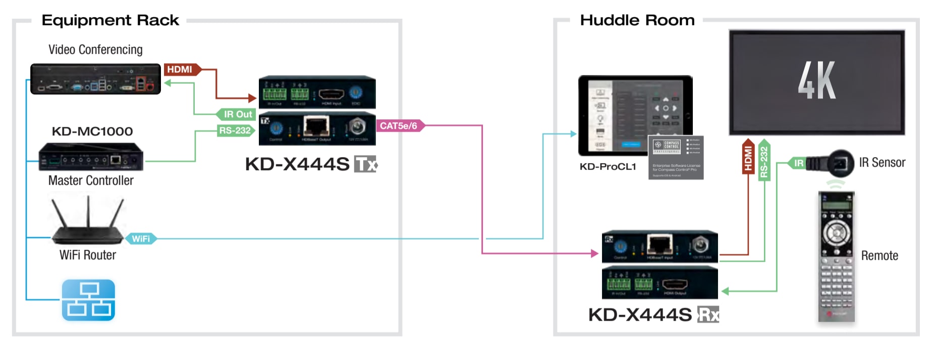 - Up/Down IR: Two channels of IR enable control to/from devices or control systems connected to Tx and Rx units