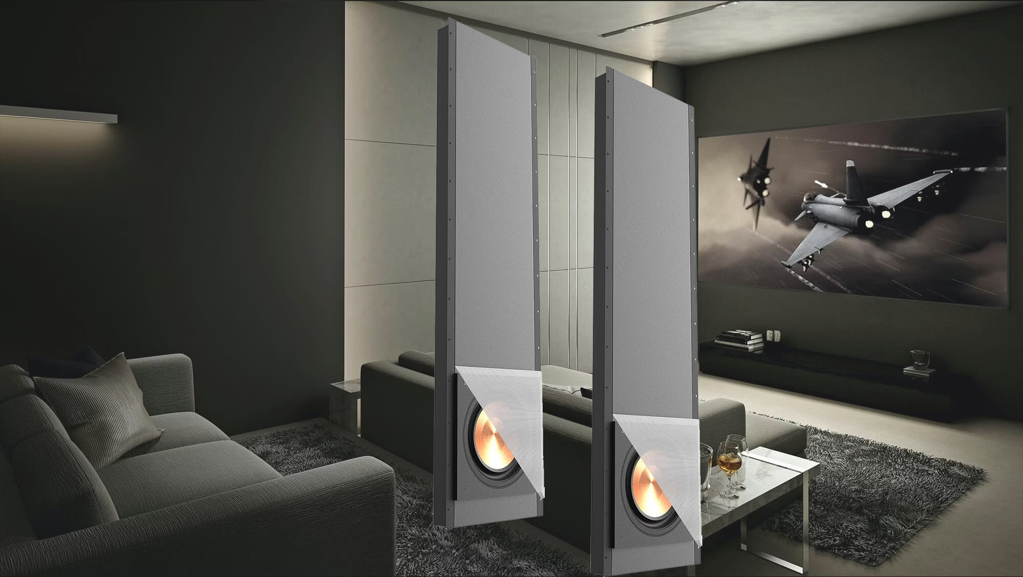 Klipsch PRO-1200SW skiller seg ut ved å være bare 9,5 cm dyp, noe som gjør den ideell for innbygging mellom standard veggstendere .