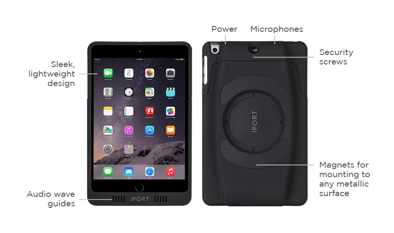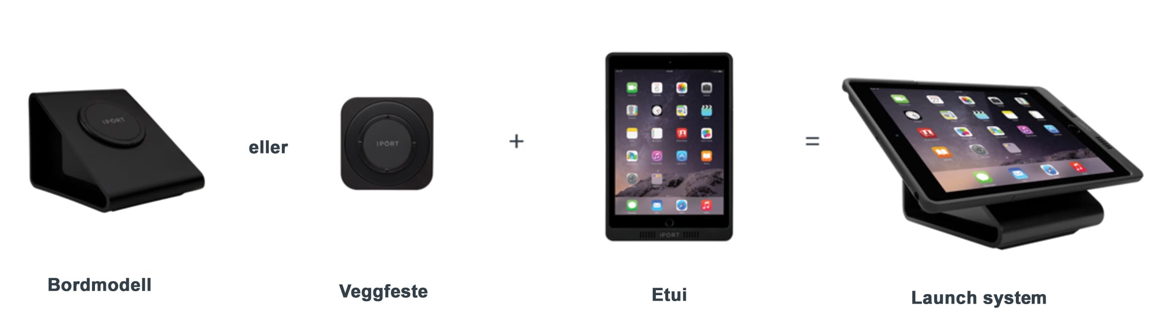 IPORT LAUNCH er et trådløst ladesystem for iPad designet for å holde, lade og beskytte iPad på et bord eller på en vegg. LAUNCH etuiet gir deg full tilgang til alle iPad-knapper, mikrofoner, kameraer og høyttalere. Magneter gjør det mulig å montere etuiet på alle LAUNCH ladestasjoner eller hvilken som helst metalloverflate i stående eller liggende retning.