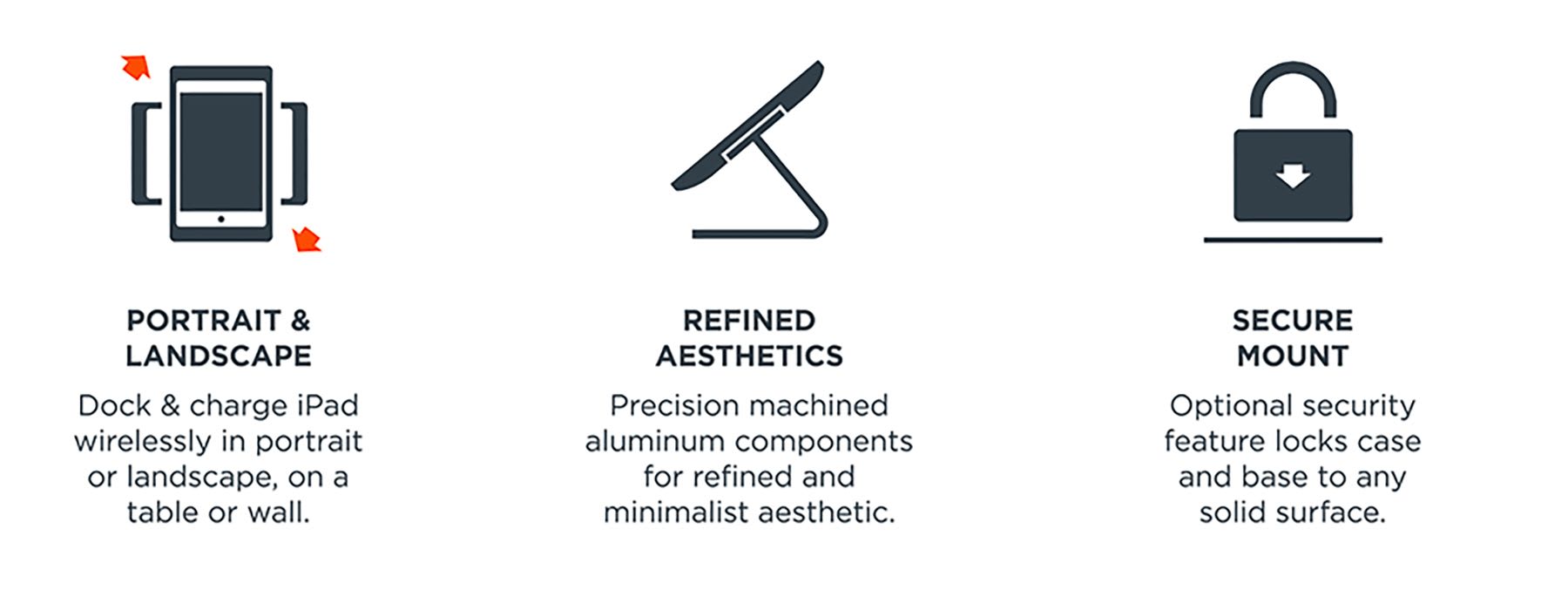 IPORT LUXE er et førsteklasses trådløst lade- og monteringssystem for iPad, designet for lading på et bord eller på vegg. LUXE dekselet er et tynt kabinett av aluminium som beskytter iPad og samtidig gir deg full tilgang til alle iPad-knapper, mikrofoner, kameraer og høyttalere. LUXE bordmodell lar iPad lade trådløst og monteres via innebygde magneter. Sikkerhetsfunksjonene til bodmodellen inkluderer muligheten til å låse dekselet på ladestasjonen. Bordmodellen kan drives av en USB-adapter eller valgfritt via PoE ved hjelp av IPORT PoE Splitter (selges separat). LUXE veggstasjon er makedes minste mest elegante iPad veggfeste laget av et unikt stykke aluminium. Ved hjelp av IPORTs PoE Splitter og en standard CAT-kabel kan veggstasjon monteres opptil 30 meter fra strømkilden. Med sin minimalistiske design og førsteklasses utførelser vil LUXE systemet gli inn i ethvert interiør, og din iPad vil alltid være ladet og beskyttet.