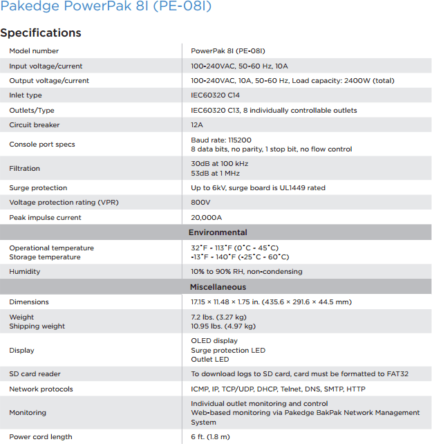 Pakadge 8-Outlet Surge Protected, Intelligent Power Distribution Unit.