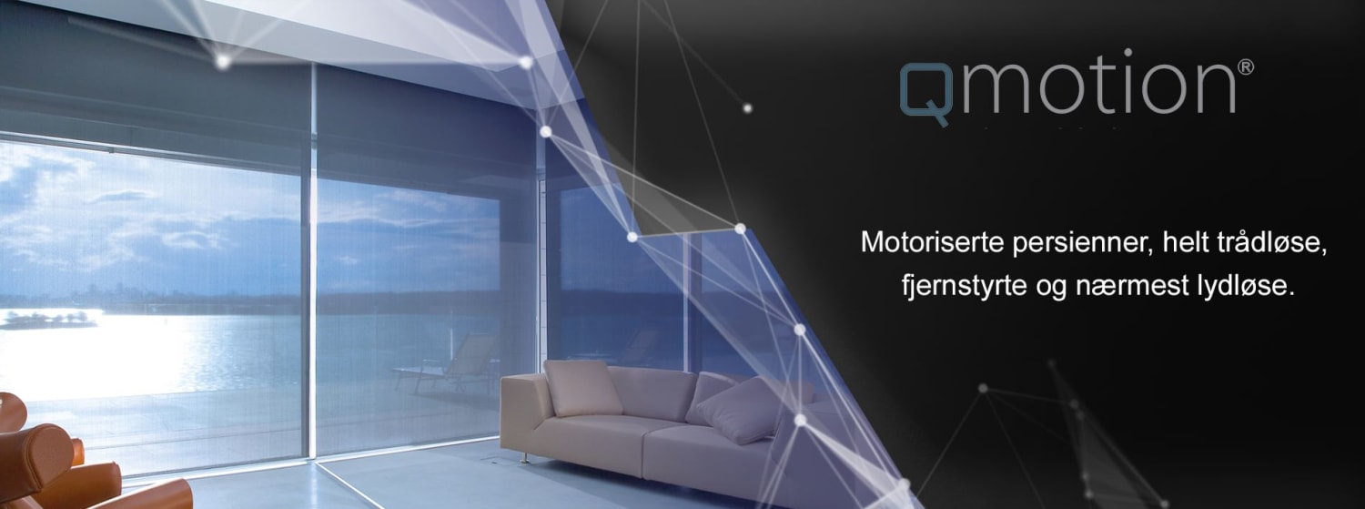 Markedets eneste motoriserte gardin som også kan betjenes manuelt. Qmotion sin patenterte motor styring lar deg betjene gardinen via fjernkontroll, Control4 styringssystem eller manuelt.
