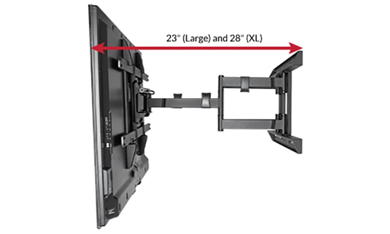 Med en svingradius på opptil 180 grader og en uttrekkslengde på 23” (Large) og 28” (XL) beveger dette festet seg jevnt med minimal kraft.