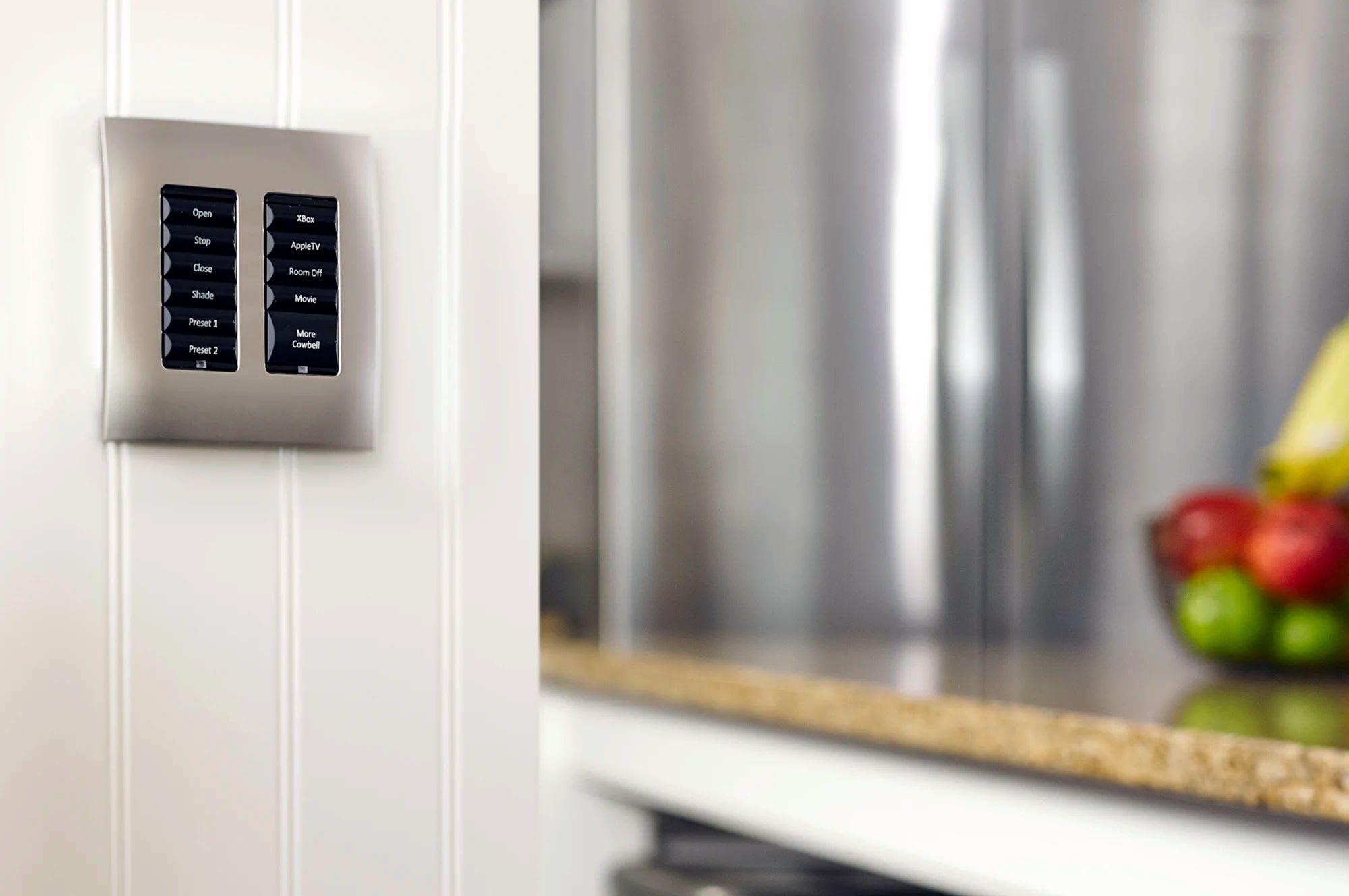 Perfect for homes that are in the new-build stages or homes undergoing a remodel project, lighting wires are run to a centralized location—such as a utility closet—eliminating the need for banks of switches (“wall acne”) and, instead, replacing control of individual or sets of light fixtures with stylish and elegant keypads.