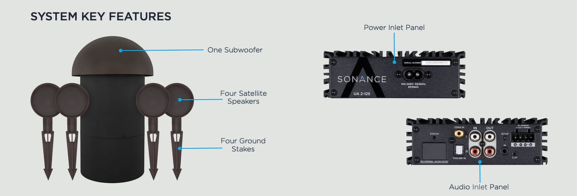 Sonance Patio 4.1 kit med UA 2-125 effektforsterker