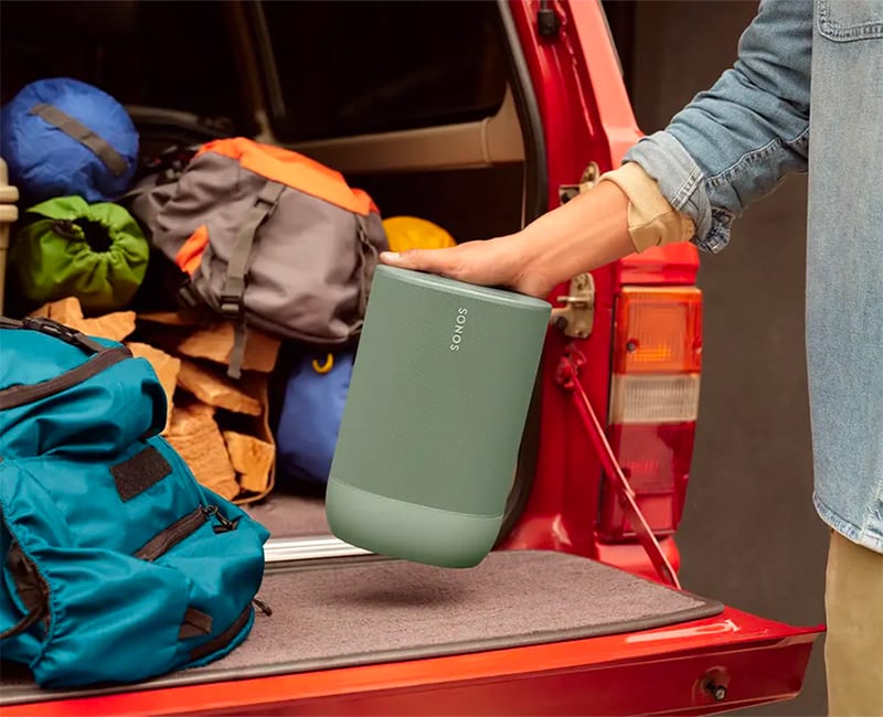 Enten du vil høre på en podkast på kjøkkenet, høre på radioen i hagen eller ta med deg musikken din på en helgetur, sørger Move 2 for alt. Kjenn deg mer omsluttet av lyd når du stereoparer to av dem i samme rom, eller legg den til et lydanlegg for hele boligen sammen med andre Sonos-høyttalere.